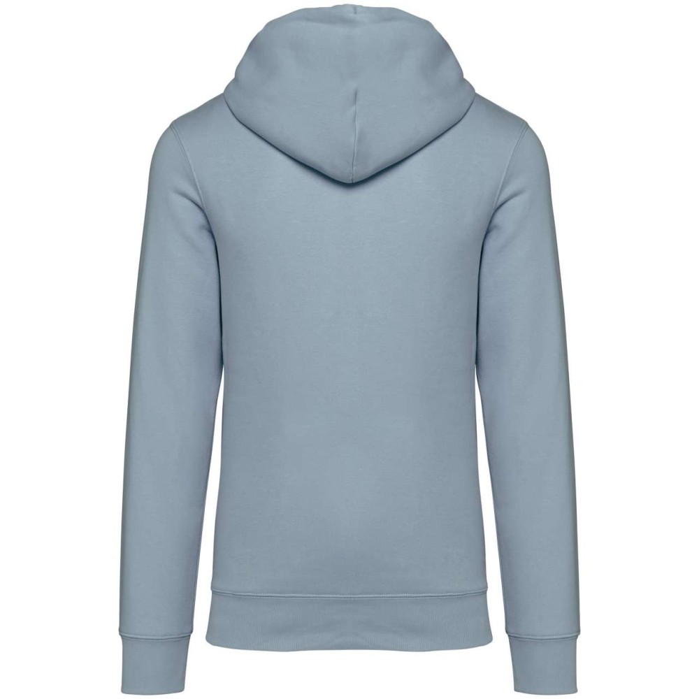 85 % bio, fésült pamutból és 15 % újrahasznosított poliészterből készült. Unisex. Egyenes szabás. Méretcímke organikus pamut és újrahasznosított poliészter logóval. LSF (Low Shrinkage Fleece: előzsugorított polár) kezelés. Kapucni. 1x1 bordás szegély és kézelő. Duplatűzés a kézelőn, a szegélyen és a nyaknál. Szalagozott nyakbelső hátul. Bélelt kapucni, a nyaknyíláson nincs felülvarrás, csak egy megkötés, hogy a húzózsinór a felső részen maradjon. Kerek húzózsinór a kapucnin fém véggel. Kenguru zseb. Nincs márkajelzés a nyakrészen, csak egy méretcímke a könnyű dekorálás érdekében. Karton függőcímkével érkezik, amely felsorolja a termék előállításához felhasznált környezetbarát anyagokat. Organikus pamutfonal. OEKO-TEX N CQ1007/7 STANDARD 100 tanúsítvánnyal rendelkezik. IFTH. 350 g/m2.