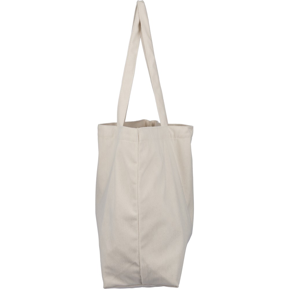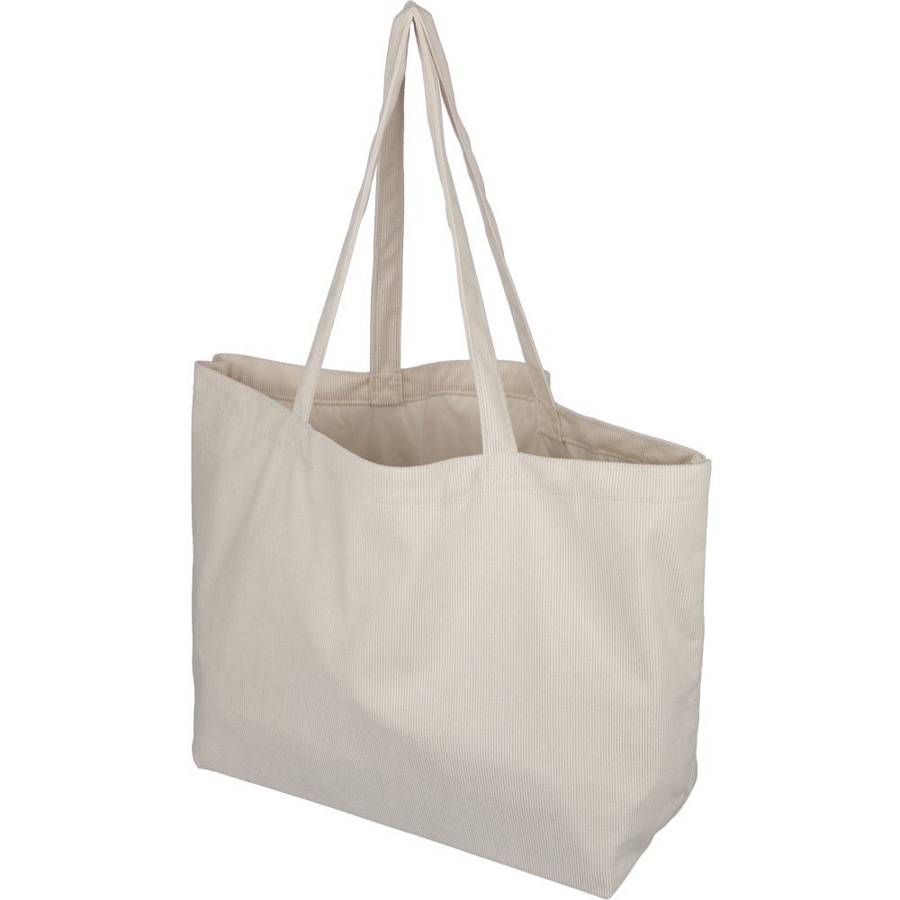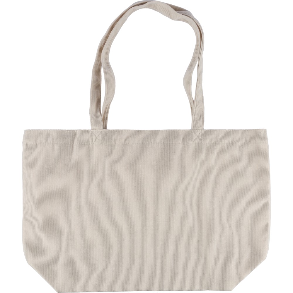 Kordbársony anyagból készült válltáska 2,5 × 60 cm hosszúságú fülekkel, 51 × 15 × 33 cm méretű tágas fő rekesszel és 10 × 10 cm méretű belső zsebbel. Mindennapi használatra alkalmas.