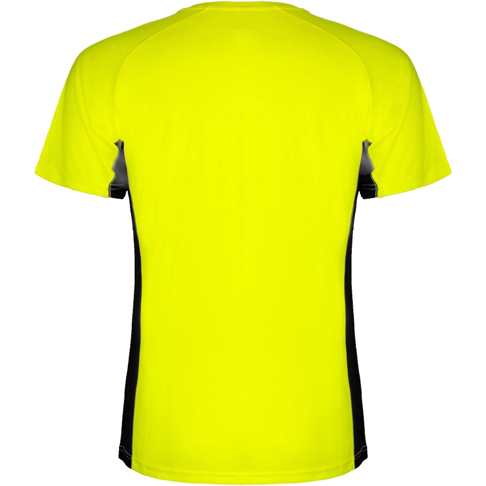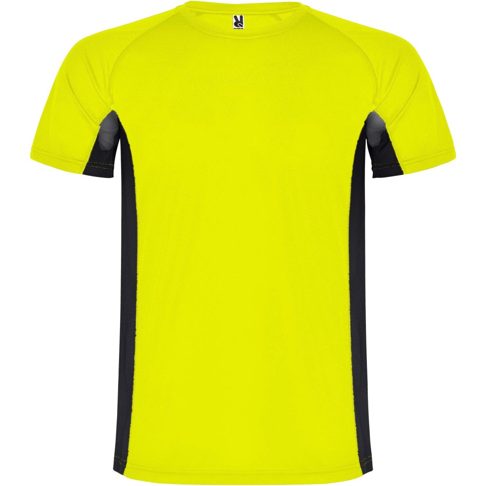 Roly Shanghai rövid ujjú férfi sportpóló, fluor yellow, solid black