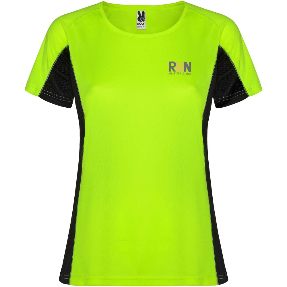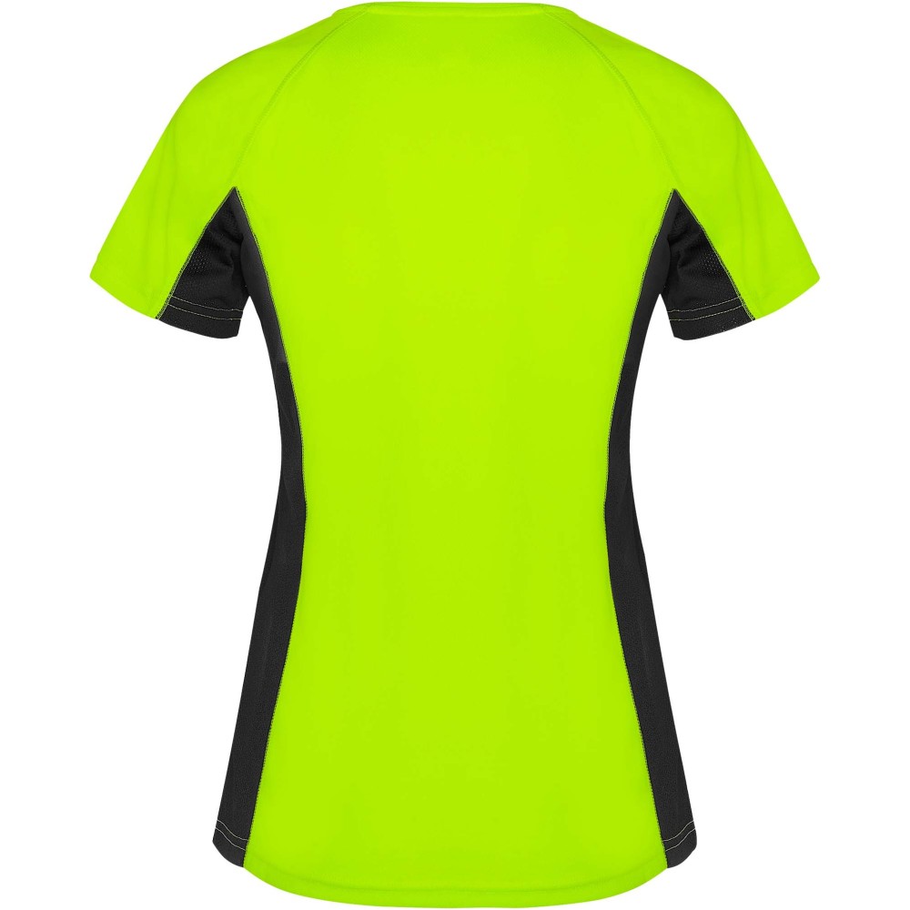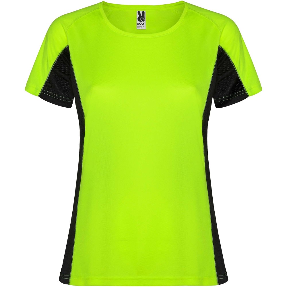 Roly Shanghai rövid ujjú női sportpóló, fluor yellow, solid black